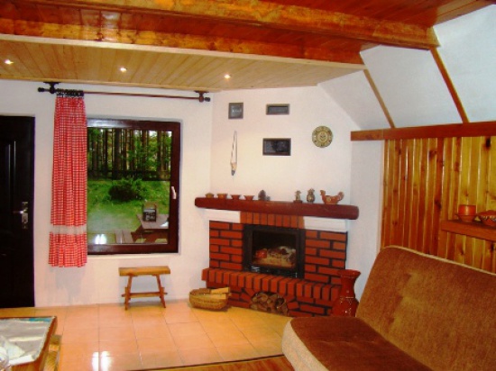Dom składa się z salonu z kominkiem, aneksu kuchennego (pełne wyposażenie), łazienki, na piętrze duża sypialnia /, 4 łóżka,/ taras , balkon (grill, meble ogrodowe).